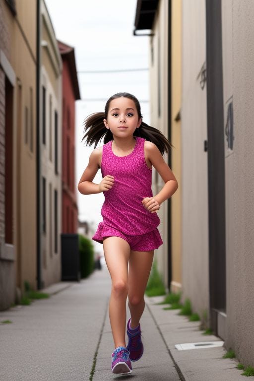 “girl running down an alley from spaghetti”
